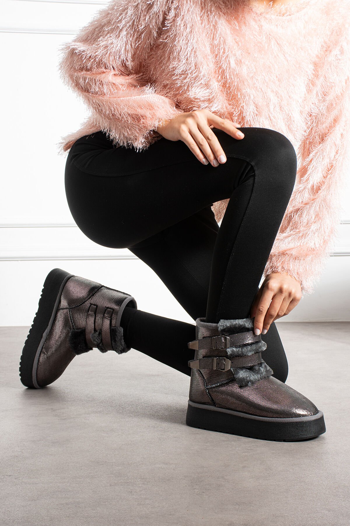 Mat süet materyaliyle dikkat çeken kadın şık günlük bot Bruna, hem şıklığı hem rahatlığı bir arada sunar. İç kısmı kürklü yapısıyla soğuk havalarda ayaklarınızı sıcak tutarken, termo tabanı kaymaya karşı dayanıklı yapıdadır.