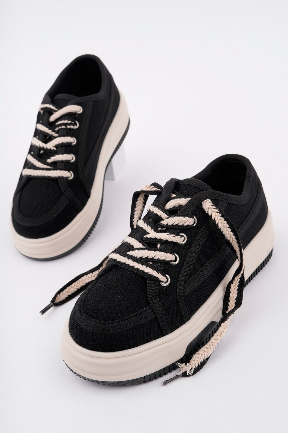 Çocuk Keten Günlük Ayakkabı Jaelina Siyah - 35