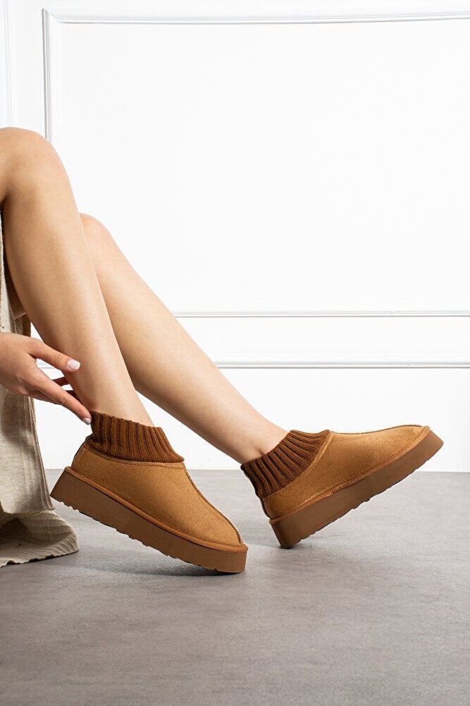 Kadın Triko Boğazlı Kalın Taban Süet İçi Kürklü Şık Günlük Bot Eduarda Taba - 40
