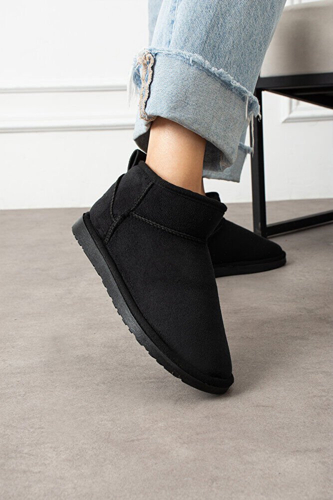 Kadın Mini Taban Süet İçi Kürklü Şık Günlük Bot Fernanda Siyah - 40
