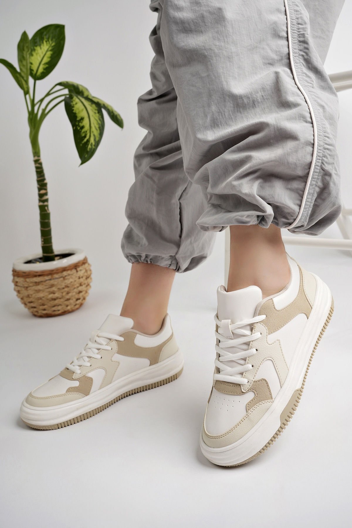 Kaliteli malzemelerle Türkiye’de özenle üretilen bu kadın sneaker, dört mevsim rahatlıkla kullanılabilir. Spor kombinlerden günlük şehir stiline kadar geniş bir kullanım yelpazesi sunar. Hafifliği, esnek yapısı ve nefes alabilen dış yüzeyi sayesinde uzun süreli kullanımlarda konforunuzu korur. Bej detaylarıyla modern bir görünüm sağlayan bu günlük ayakkabı, gardırobunuzun vazgeçilmez parçalarından biri olmaya adaydır.