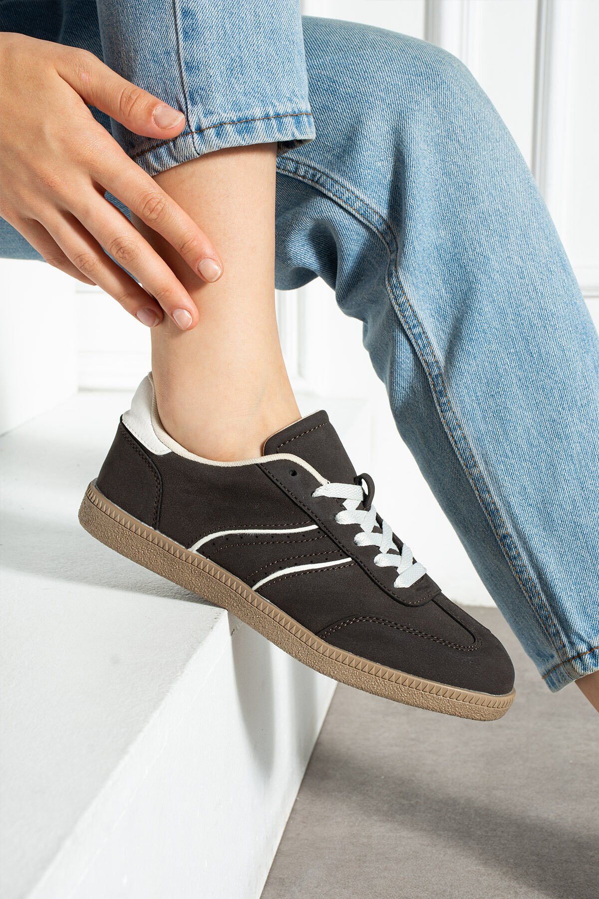 - Numara Bilgisi: Modelin giydiği ayakkabı 37 numaradır