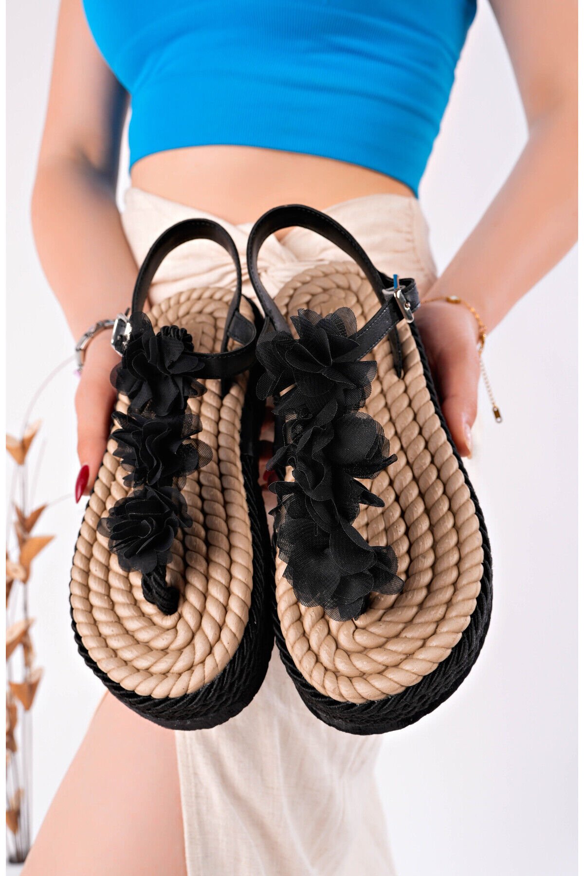 Kadın Günlük Şık Terlik Maralina, el yapımı hasır görünümlü kalın platform tabanı ve yoğun çiçek aplikeli üst bandı ile yaz kombinlerine doğal bir şıklık katıyor. Yumuşak iç tabanı sayesinde gün boyu konforlu bir kullanım sunan Kadın Günlük Şık Terlik Maralina, hafif ve esnek yapısı ile uzun süreli kullanımlarda dahi ayağı yormaz. Tam kalıp tasarımı sayesinde kendi numaranızı tercih edebilirsiniz. Bilekten tokalı bant, sandaletin ayağa tam oturmasını sağlarken, açık burunlu yapısı ferah bir kullanım sunar. Doğal ve modern görünümüyle şort, elbise, etek ve jeanlerle mükemmel uyum sağlar. Türkiye'de üretilen bu model, günlük kullanıma ve şehir hayatının temposuna rahatlıkla ayak uydurur.
