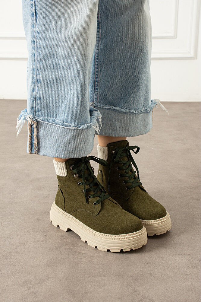 Triko bilek kısmı, soğuk havalarda sıcaklık sağlarken modern duruşu destekler. Kadın şık bot Selene, kaliteli süet görünümlü kumaşıyla estetik bir dokunuş kazandırır. Günlük kombinlerde konfor ve şıklığı aynı anda sunar.