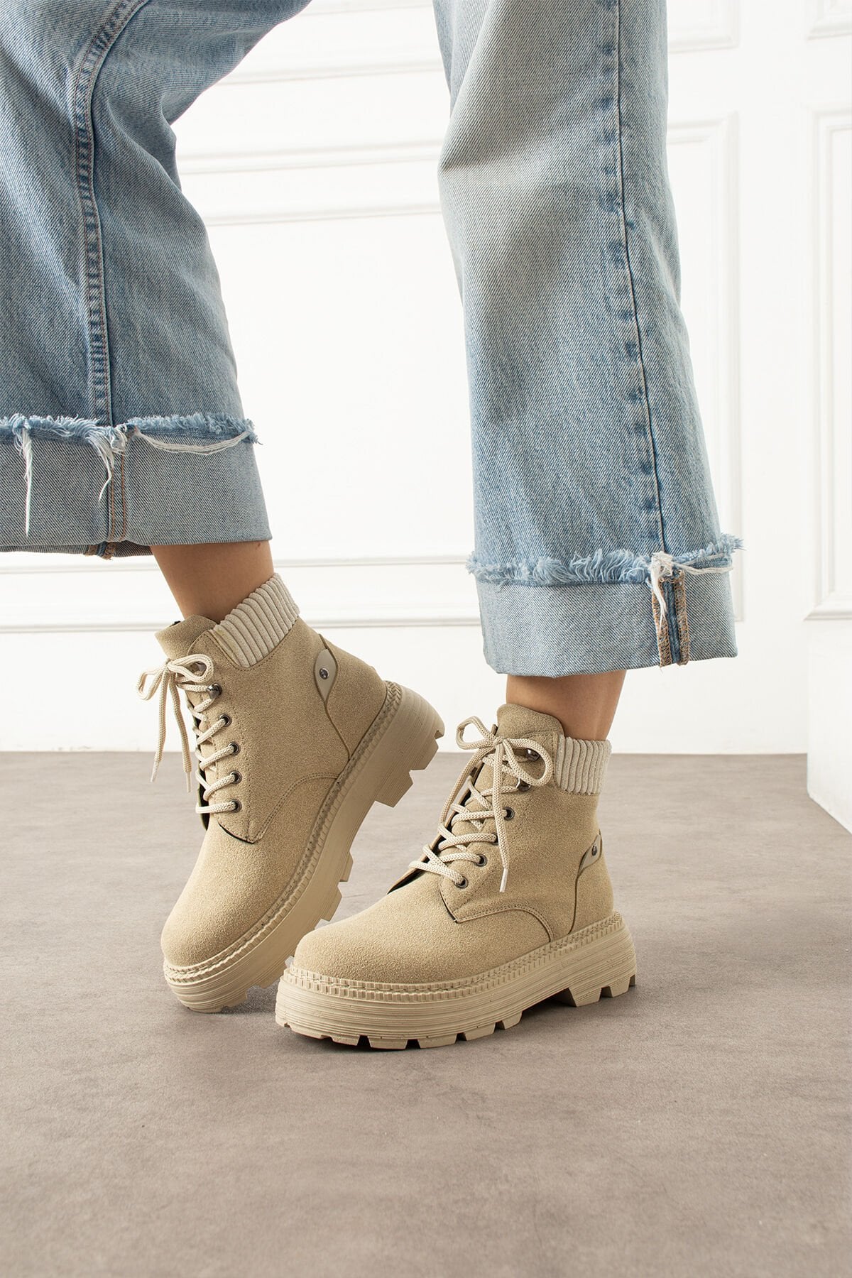 Türkiye'de üretilmiştir; Tam kalıptır kendi numaranızı almanızı tavsiye ederiz; Termo tabandır kaymaya karşı dirençlidir; Dışı: Kaliteli süet görünümlü kumaş; Sezon: Sonbahar / Kış; Geniş paça kotlar veya oversize kazaklarla günlük stiline enerjik bir dokunuş kat!; Sıcak tutan triko bilek detayı ve modern kalın tabanı ile hem konforlu hem de şık bir görünüm sunar.; Sıcak tutan triko bilek detayı ve modern kalın tabanı ile hem konforlu hem de şık bir görünüm sunar.