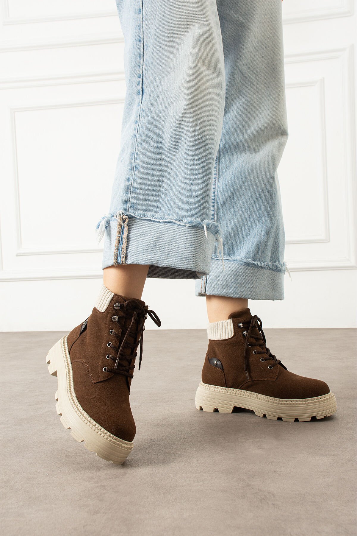 Türkiye'de üretilmiştir; Tam kalıptır kendi numaranızı almanızı tavsiye ederiz; Termo tabandır kaymaya karşı dirençlidir; Dışı: Kaliteli süet görünümlü kumaş; Sezon: Sonbahar / Kış; Geniş paça kotlar veya oversize kazaklarla günlük stiline enerjik bir dokunuş kat!; Sıcak tutan triko bilek detayı ve modern kalın tabanı ile hem konforlu hem de şık bir görünüm sunar.; Sıcak tutan triko bilek detayı ve modern kalın tabanı ile hem konforlu hem de şık bir görünüm sunar.