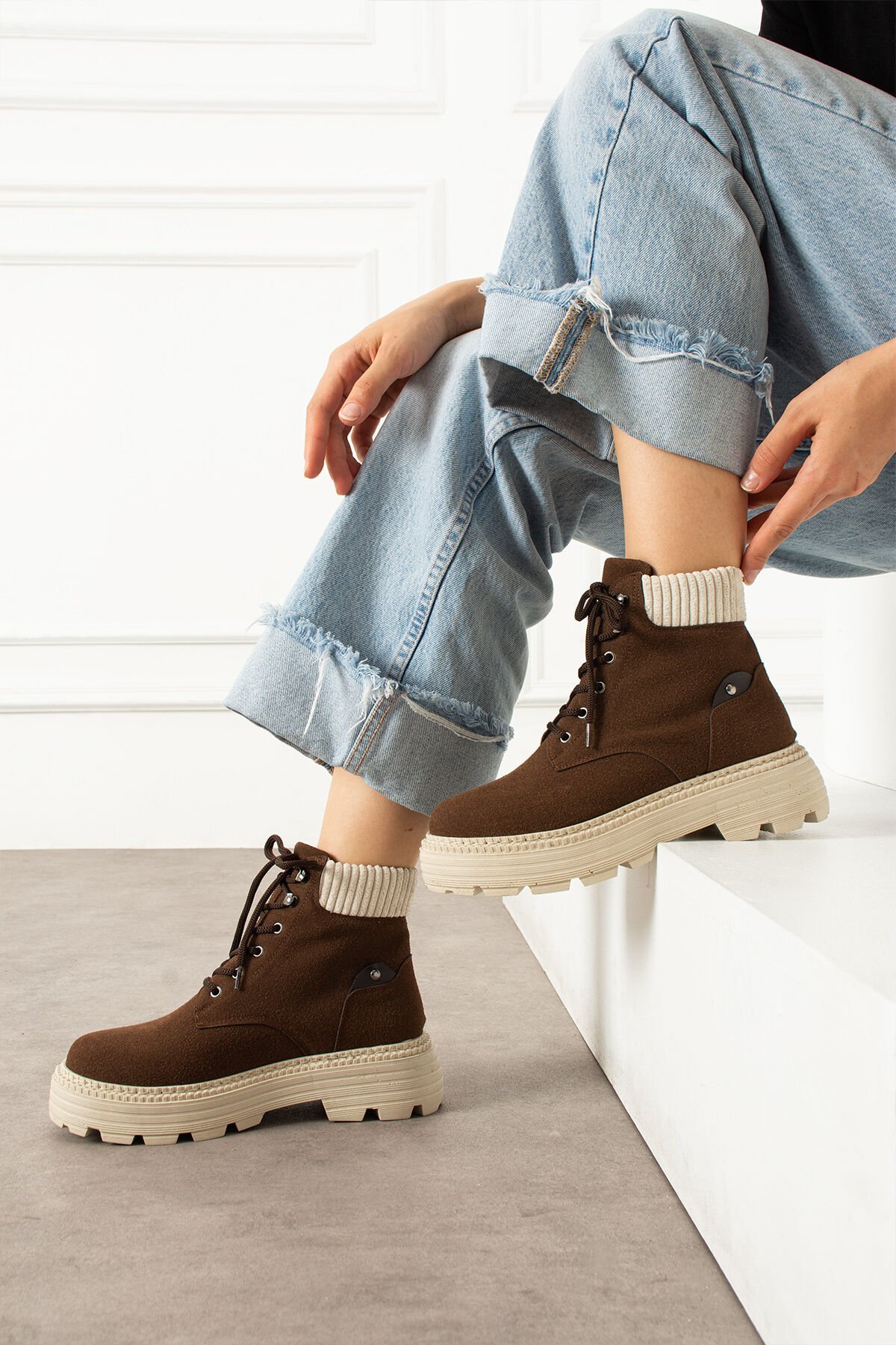 Türkiye'de üretilmiştir; Tam kalıptır kendi numaranızı almanızı tavsiye ederiz; Termo tabandır kaymaya karşı dirençlidir; Dışı: Kaliteli süet görünümlü kumaş; Sezon: Sonbahar / Kış; Geniş paça kotlar veya oversize kazaklarla günlük stiline enerjik bir dokunuş kat!; Sıcak tutan triko bilek detayı ve modern kalın tabanı ile hem konforlu hem de şık bir görünüm sunar.; Sıcak tutan triko bilek detayı ve modern kalın tabanı ile hem konforlu hem de şık bir görünüm sunar.