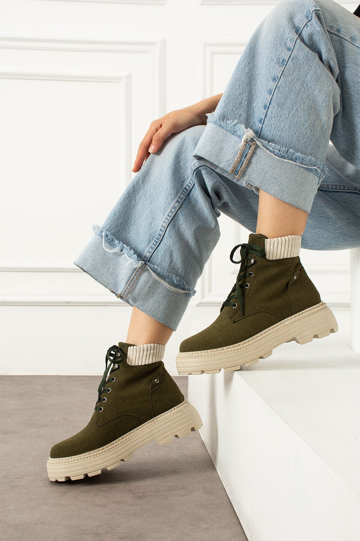 Türkiye'de üretilmiştir; Tam kalıptır kendi numaranızı almanızı tavsiye ederiz; Termo tabandır kaymaya karşı dirençlidir; Dışı: Kaliteli süet görünümlü kumaş; Sezon: Sonbahar / Kış; Geniş paça kotlar veya oversize kazaklarla günlük stiline enerjik bir dokunuş kat!; Sıcak tutan triko bilek detayı ve modern kalın tabanı ile hem konforlu hem de şık bir görünüm sunar.; Sıcak tutan triko bilek detayı ve modern kalın tabanı ile hem konforlu hem de şık bir görünüm sunar.