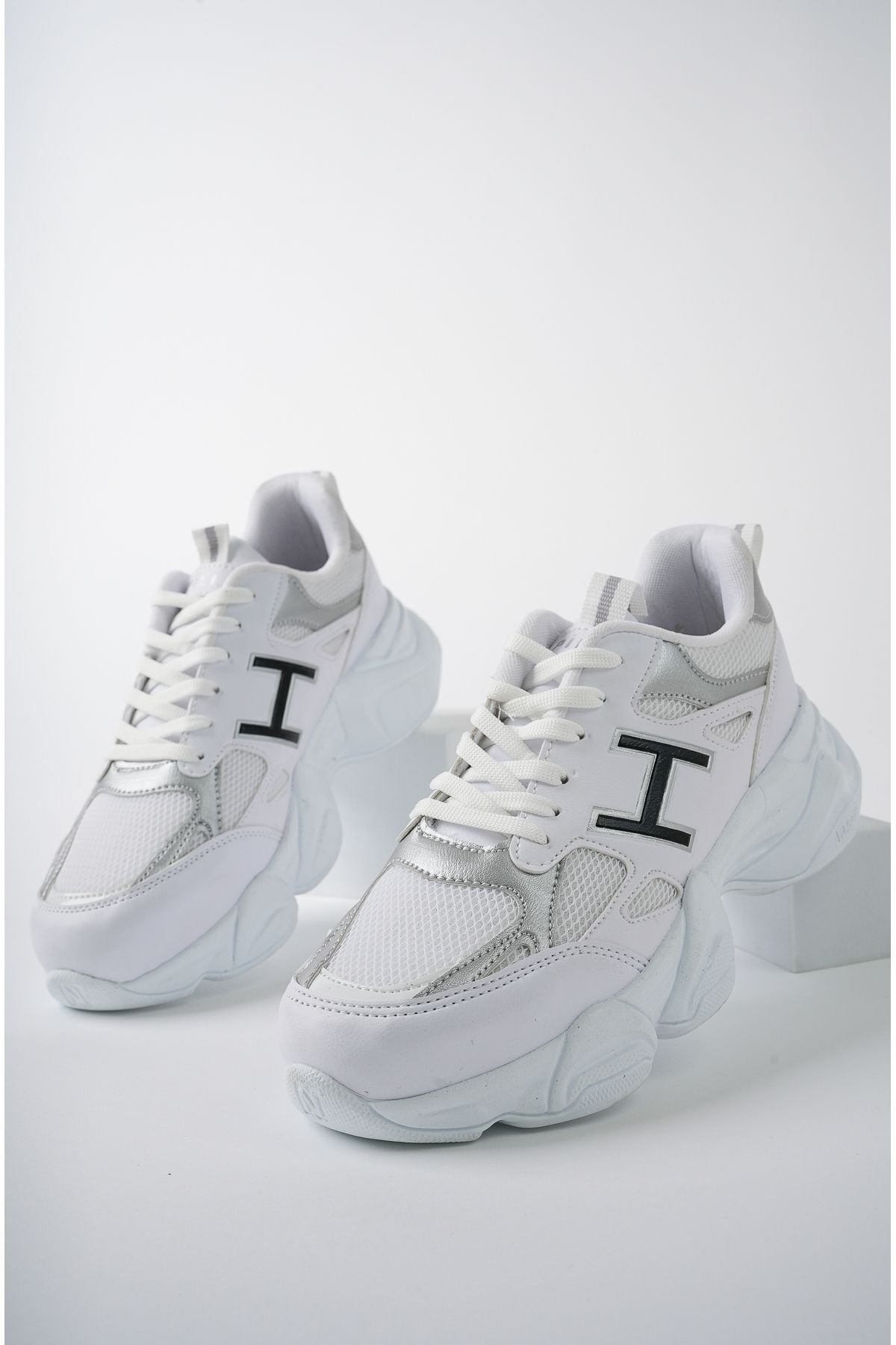 Kadın Sneaker Yüksek Taban Ayakkabı Milena Beyaz Gümüş - 40