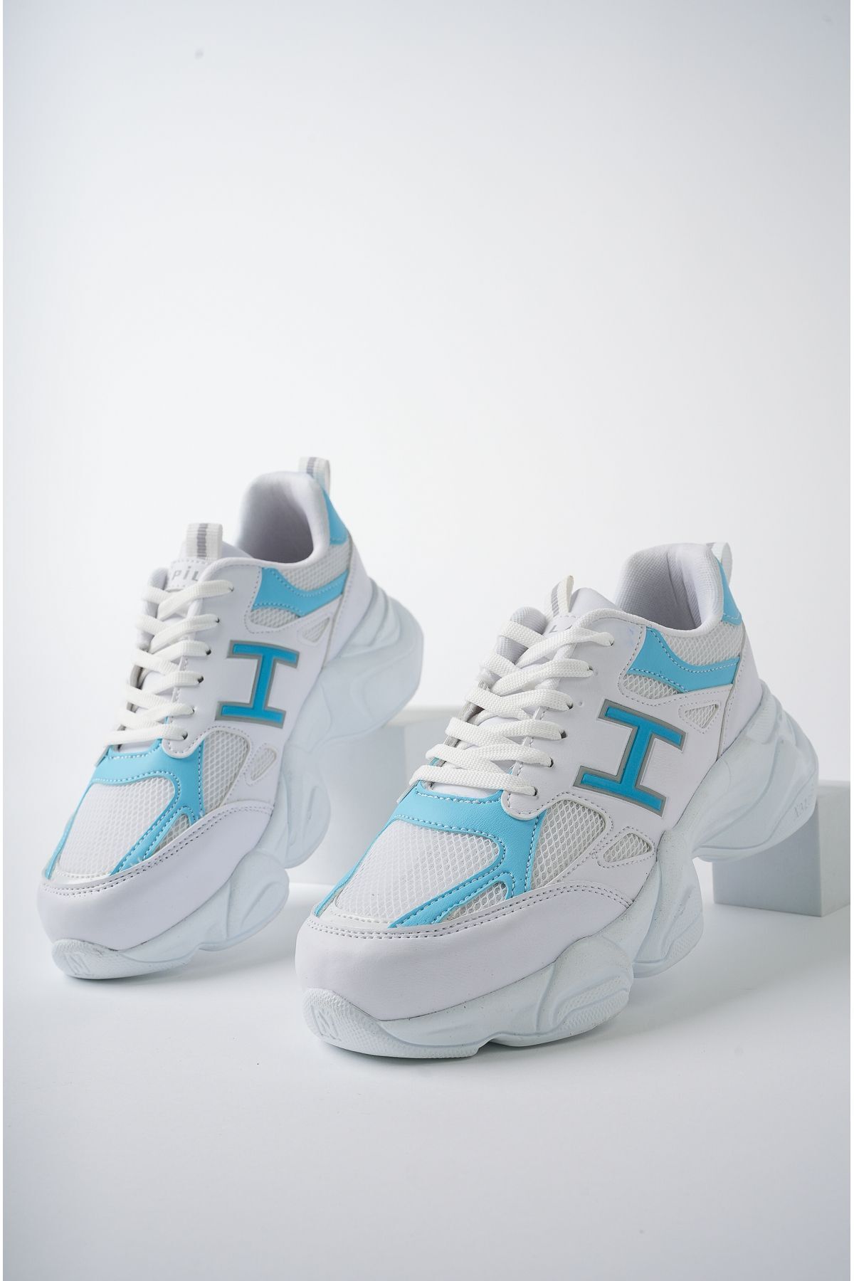 Kadın Sneaker Yüksek Taban Ayakkabı Milena Beyaz Mavi - 39
