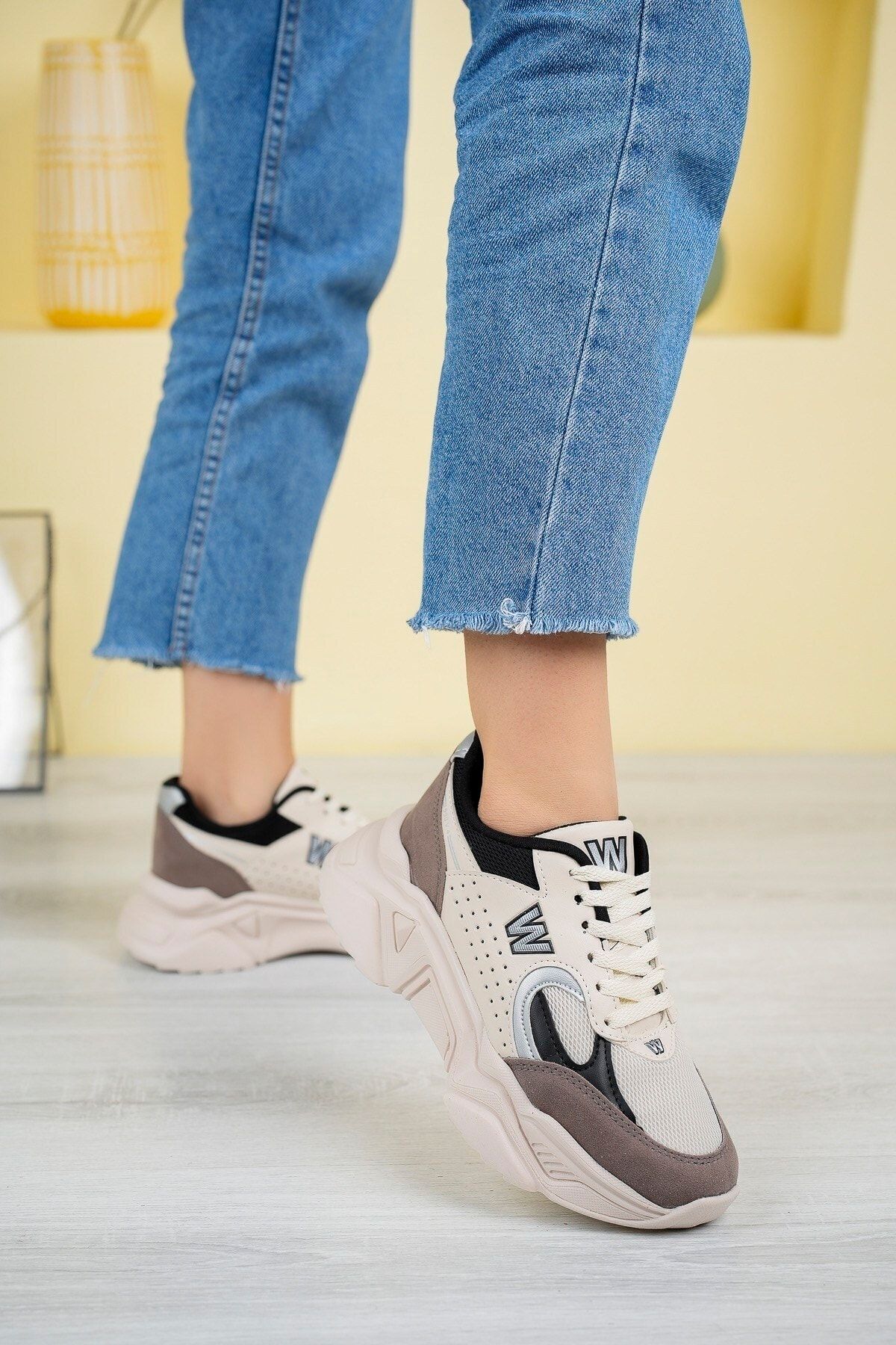 Kadın Spor Yüksek Taban Ayakkabı Talia BejSiyah - 40