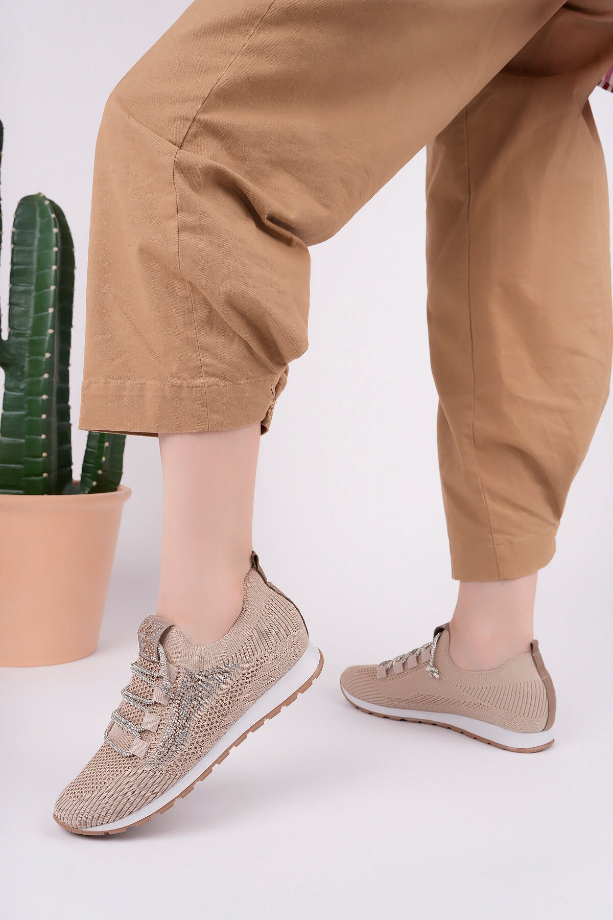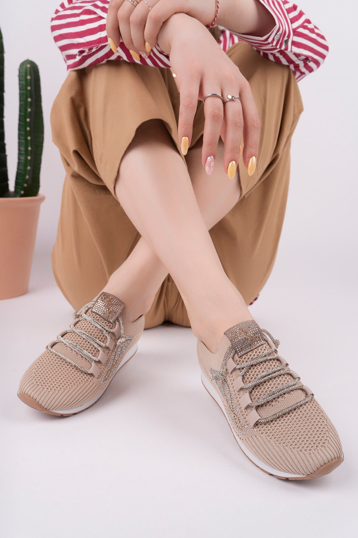 Kadın Taş Detaylı Triko Günlük Ayakkabı Aurina Bej - 39