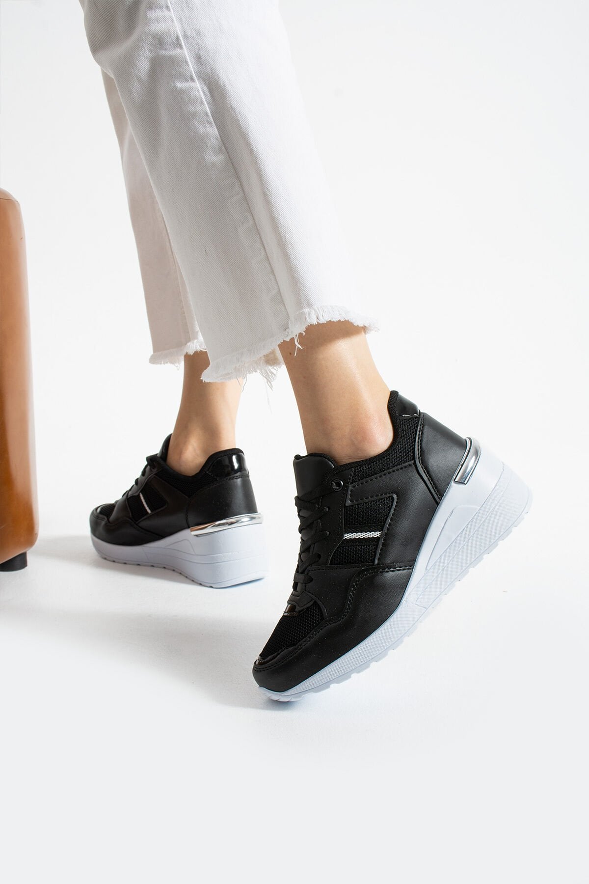 Kadın Yüksek Günlük Ayakkabı Siyah Beyaz - 36
