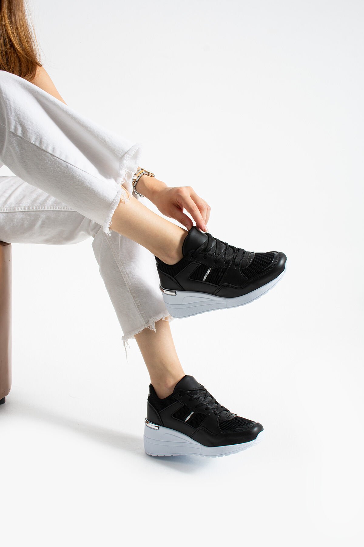 Kadın Yüksek Günlük Ayakkabı Siyah Beyaz - 37