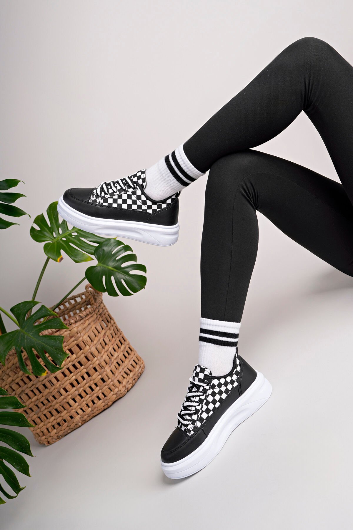 Kadın Yüksek Taban Dama Desenli Günlük Ayakkabı, basic ve casual koleksiyon trendlerine uyumlu yapısıyla hem sade hem iddialı bir görünüm sunar. Sezonun trend taban tasarımı sayesinde günlük hayatın her anında rahatlıkla kullanılabilir, şehirli kadının gardırobunda modern bir alternatif olur.