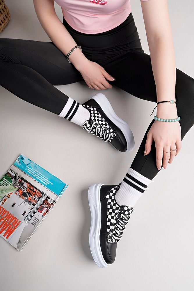 Kadın Yüksek Taban Dama Desenli Günlük Ayakkabı Lavira Siyah Beyaz - 37