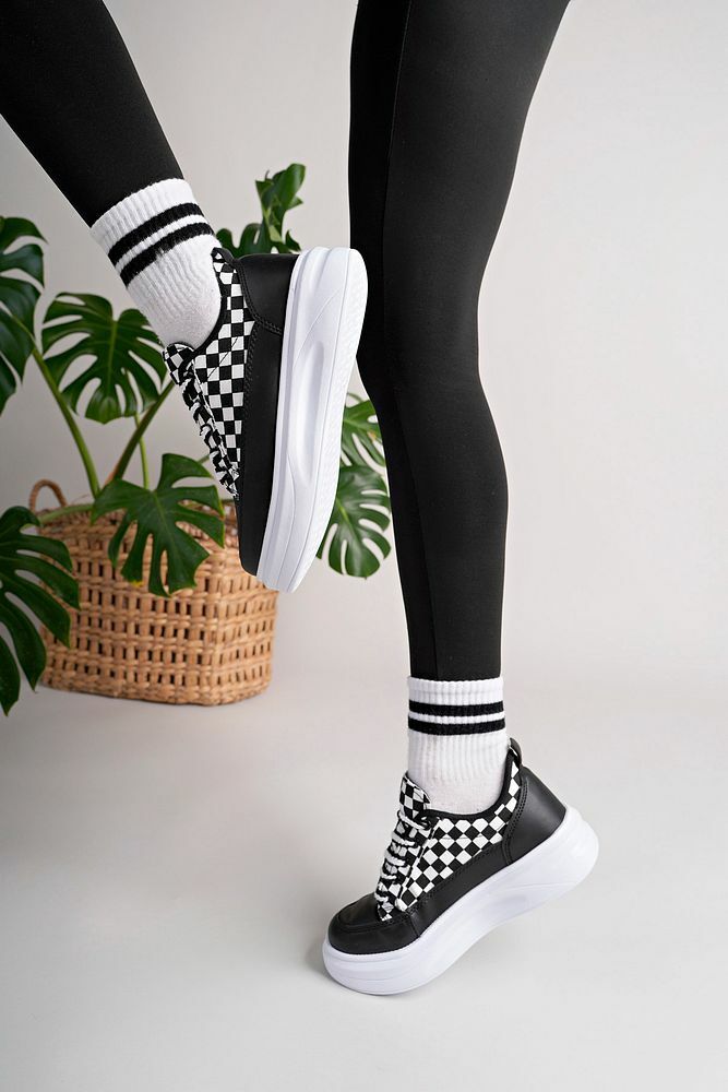 Kadın Yüksek Taban Dama Desenli Günlük Ayakkabı