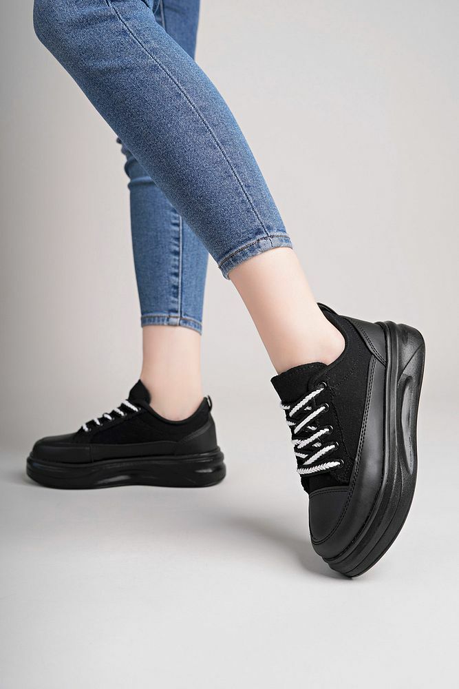 Kadın Yüksek Taban Dama Desenli Günlük Ayakkabı Lavira Siyah Siyah - 38