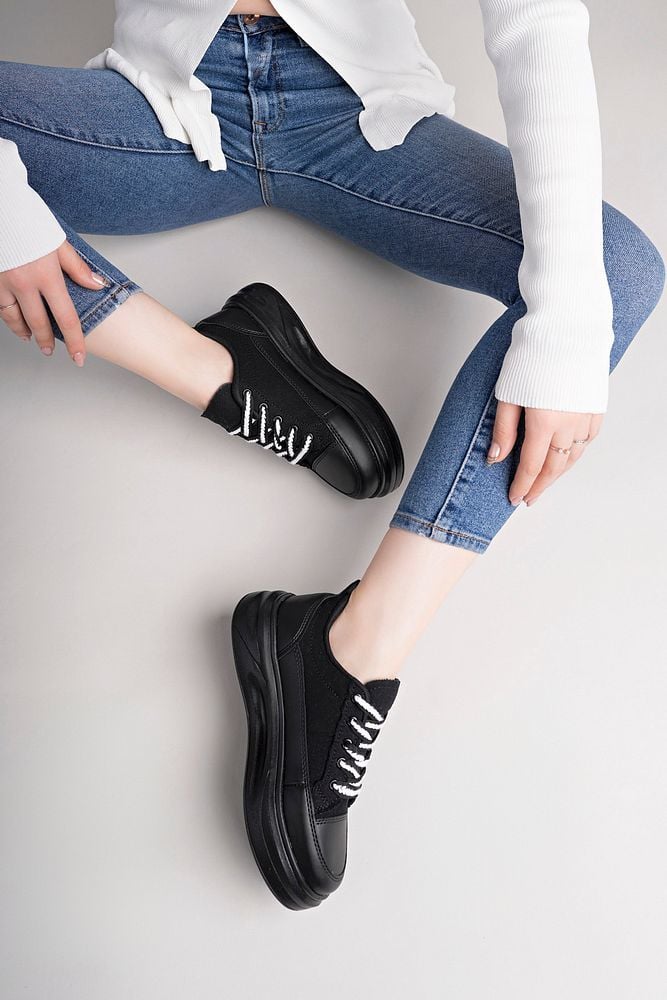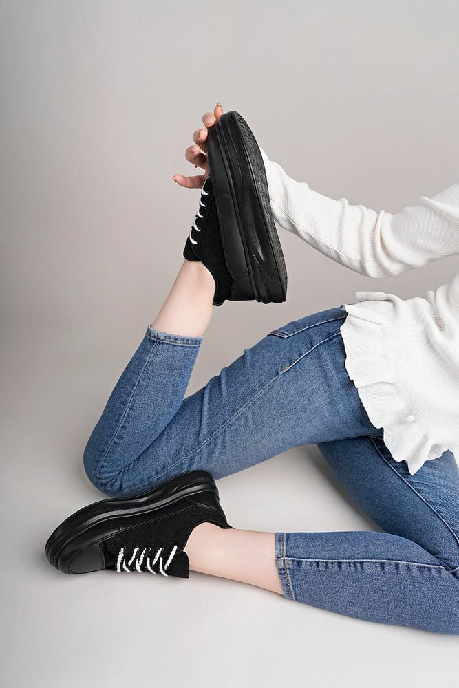 Kadın Yüksek Taban Dama Desenli Günlük Ayakkabı Lavira Siyah Siyah - 39