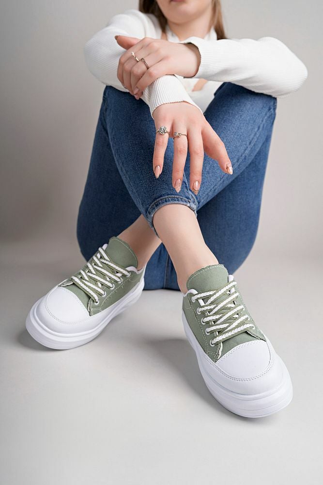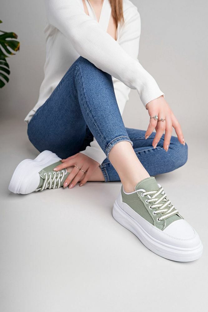 Kadın Yüksek Taban Dama Desenli Günlük Ayakkabı Lavira Yeşil Beyaz - 37