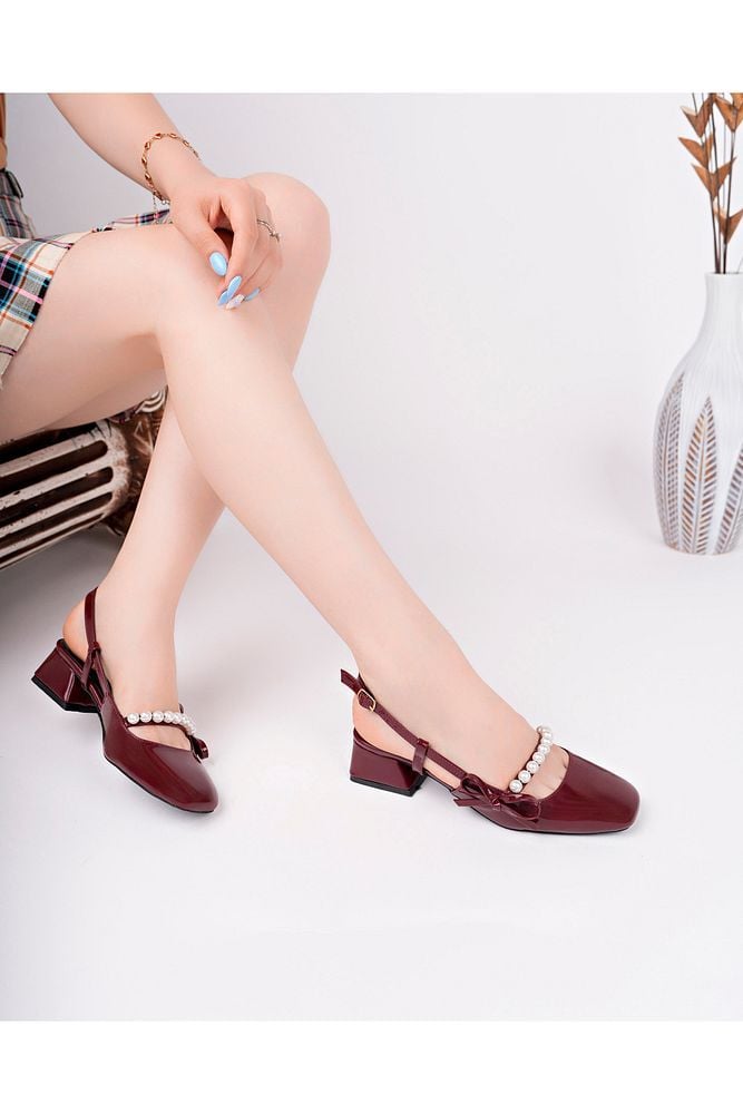Rugan Kadın Boncuk Detaylı Günlük Topuklu Ayakkabı Aurayaı Bordo Rugan - 36