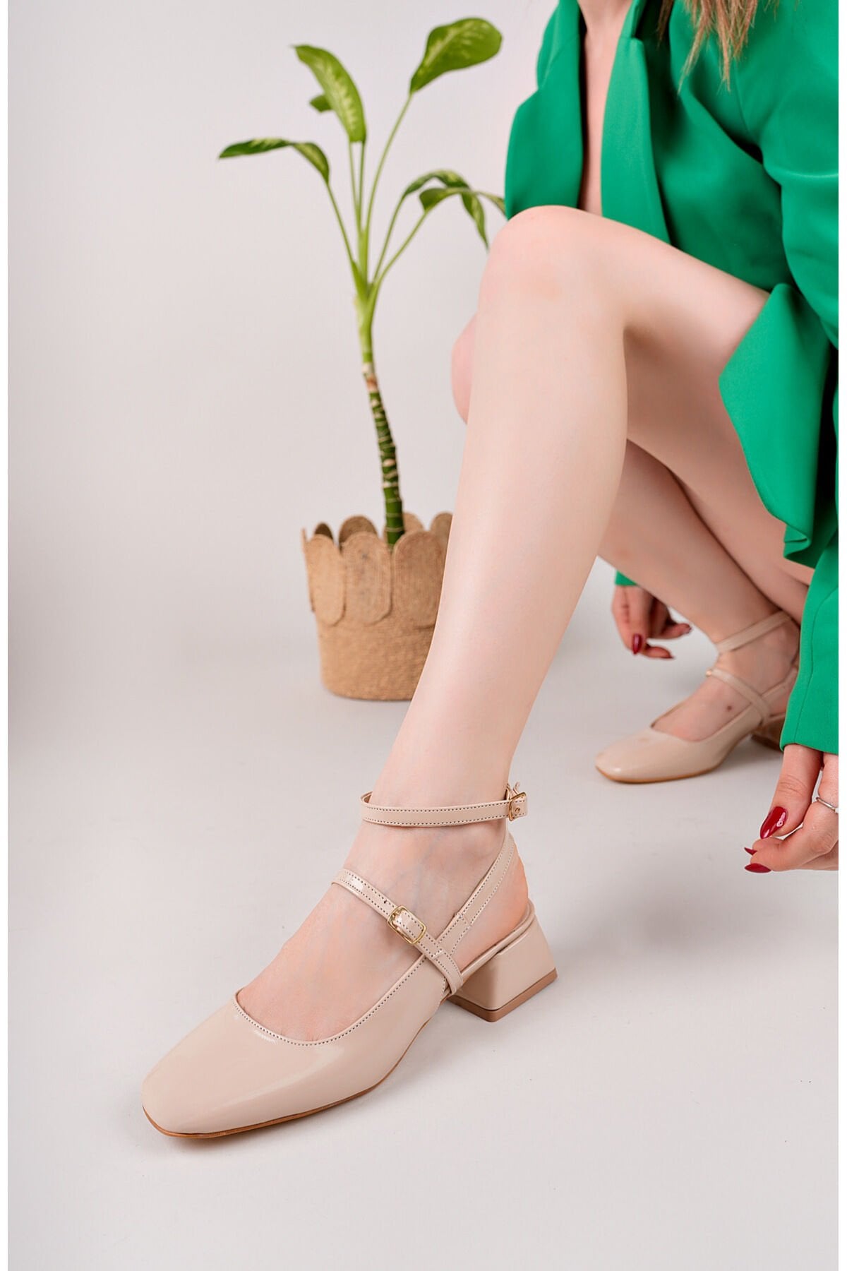 Rugan Kadın Kare Küt Burunlu Topuklu Ayakkabı Yalena Bej - 36