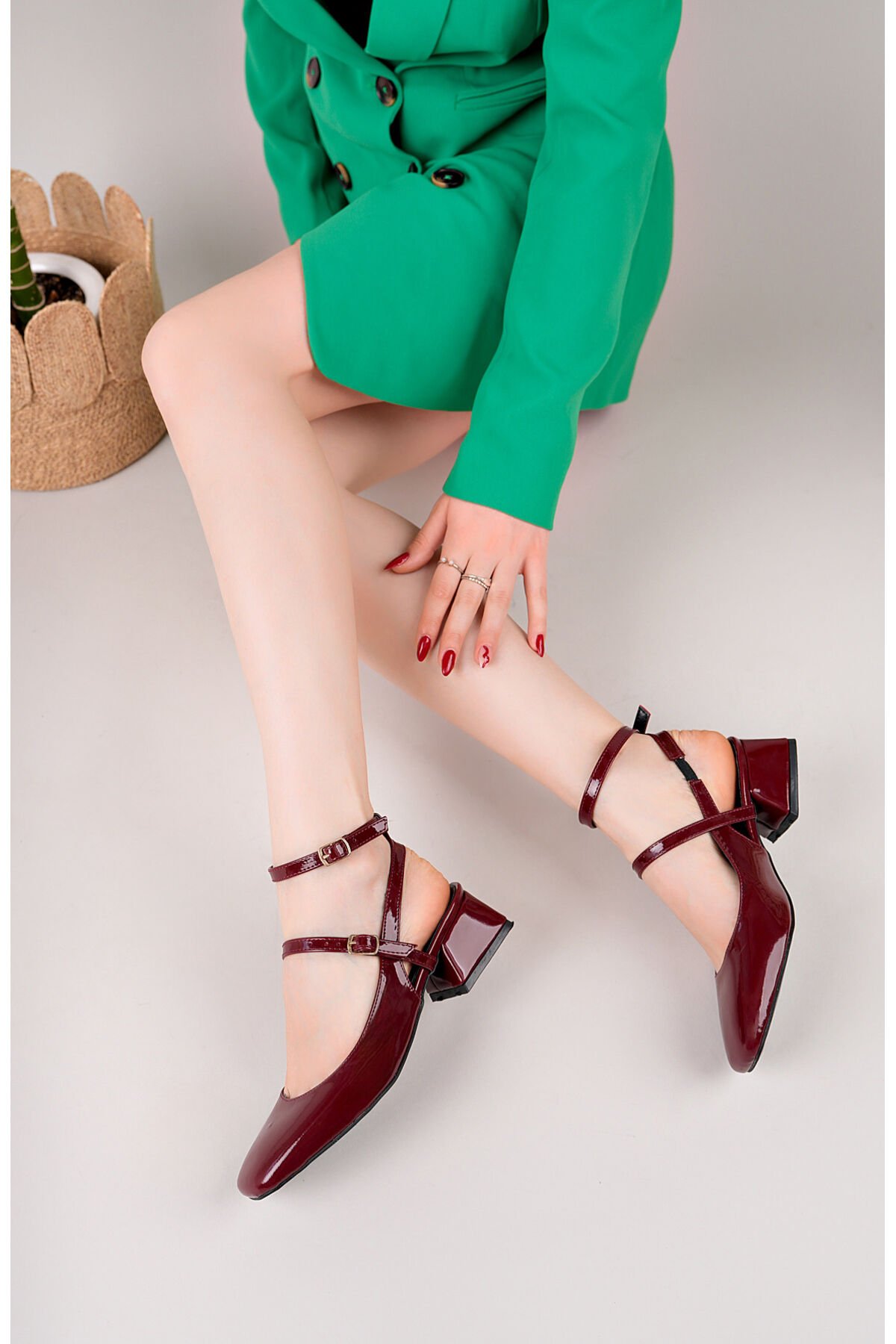Rugan Kadın Kare Küt Burunlu Topuklu Ayakkabı Yalena Bordo - 37