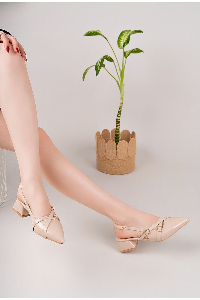 Rugan Kadın Kare Sivri Burunlu Topuklu Ayakkabı Malira Bej - 40