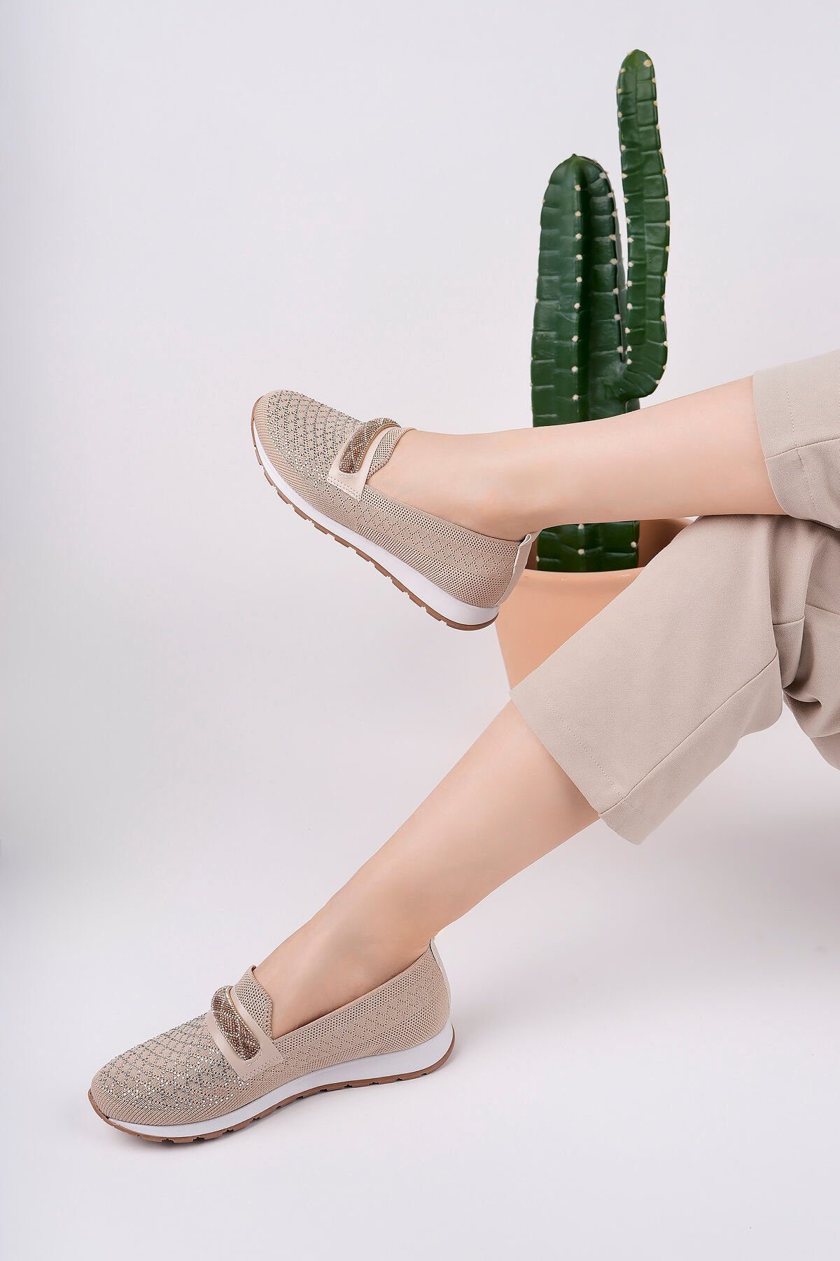 Taş Detaylı Günlük Spor Babet Levara Bej - 40