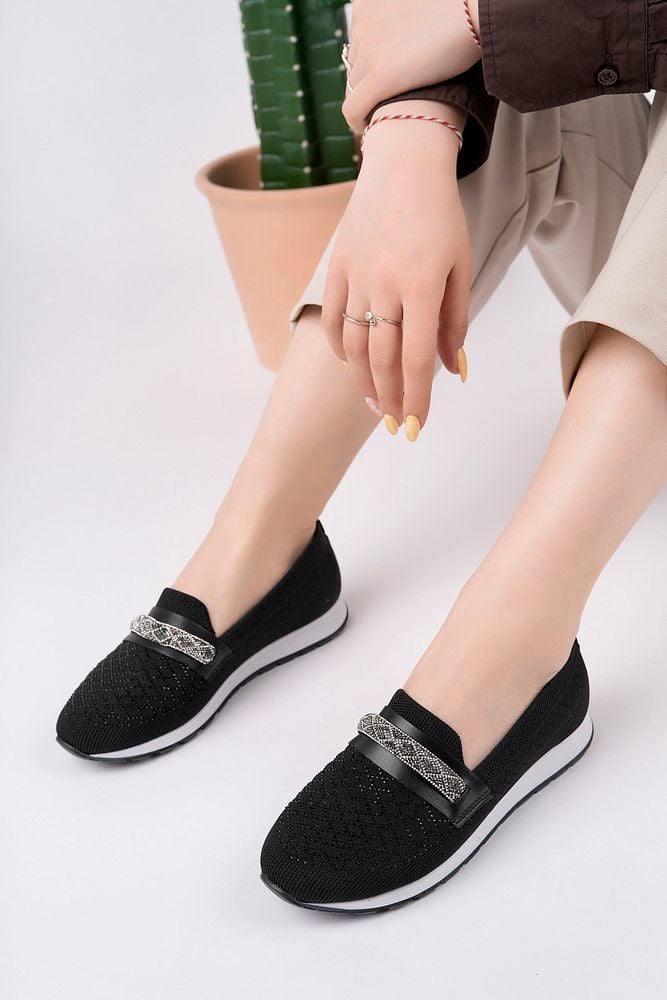 Taş Detaylı Günlük Spor Babet Levara Siyah - 36