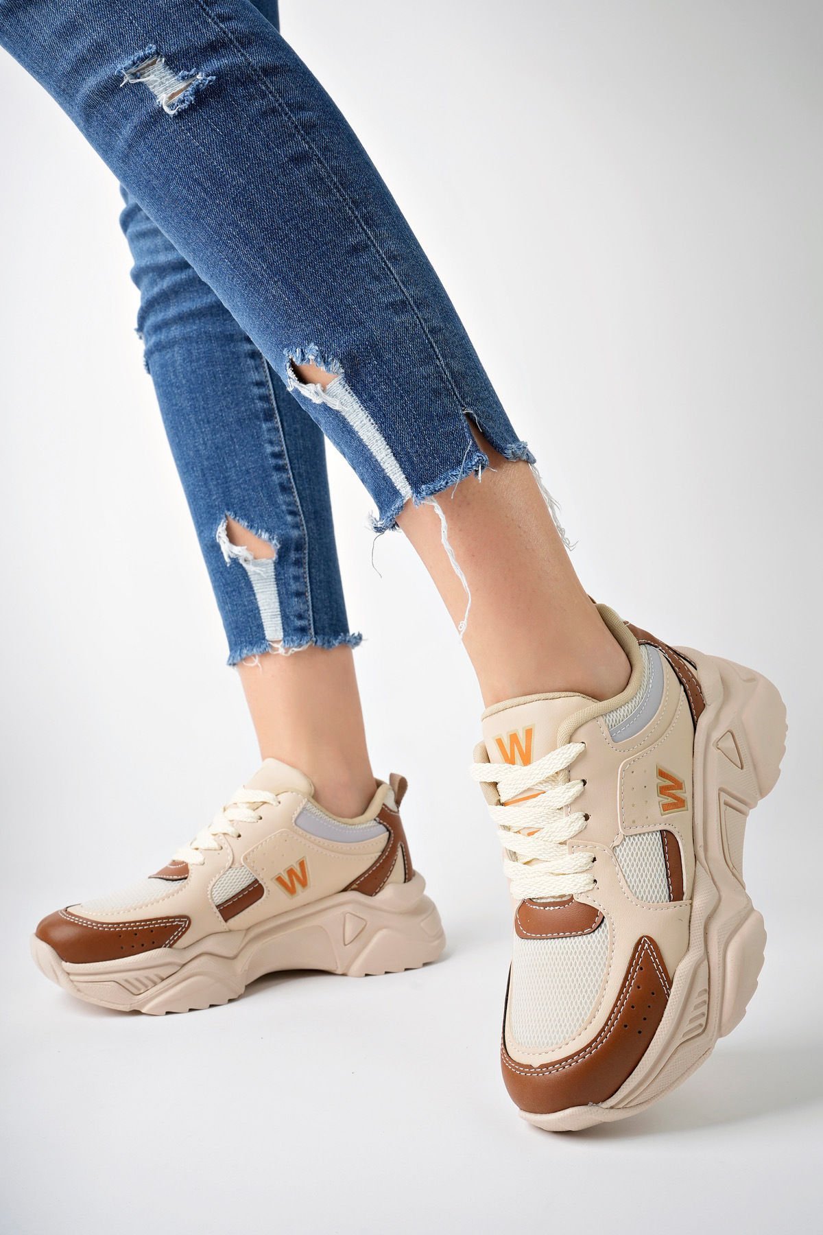 Yüksek Taban Günlük Sneaker Ayakkabı Alina Bej Taba - 37