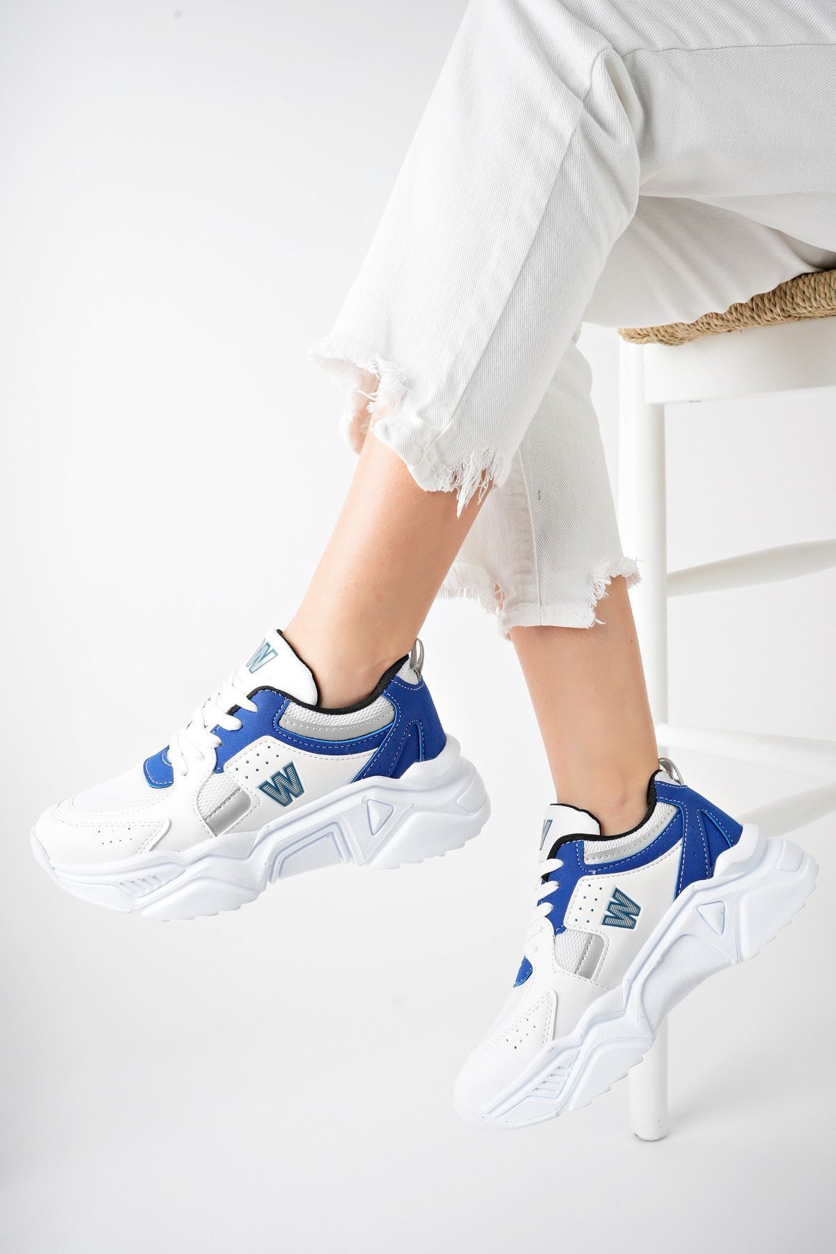 Yüksek Taban Günlük Sneaker Ayakkabı Alina Beyaz SaksMavi - 40